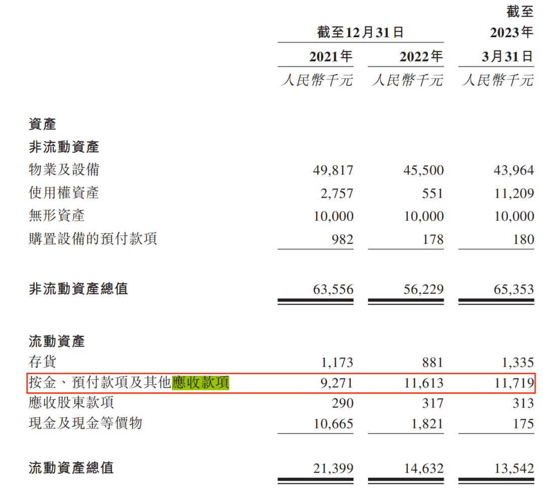 但盛禾生物在客户面前的话语权似乎并不高。招股书显示,2021-2023年3月,企业的按金、预付款项及其他应收款项927.1万元、1161.3万元、1171.9万元,逐渐攀升。