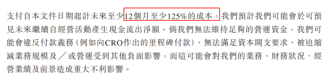 客观而言,倚锋资本这笔资金十分及时,但并不能够支撑太久。招股书称,这些资金覆盖自本文件日期起计未来至少12个月集团至少125%的成本。