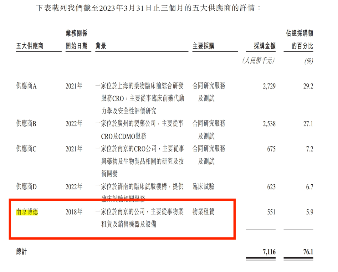 过往发展中,盛禾生物向南京博德租赁物业及购买设备。2021-2023年3月,采购金额分别为3444.2万元、222.4万元、55.1万元,占比总采购额的45.9%、7.1%、5.9%。