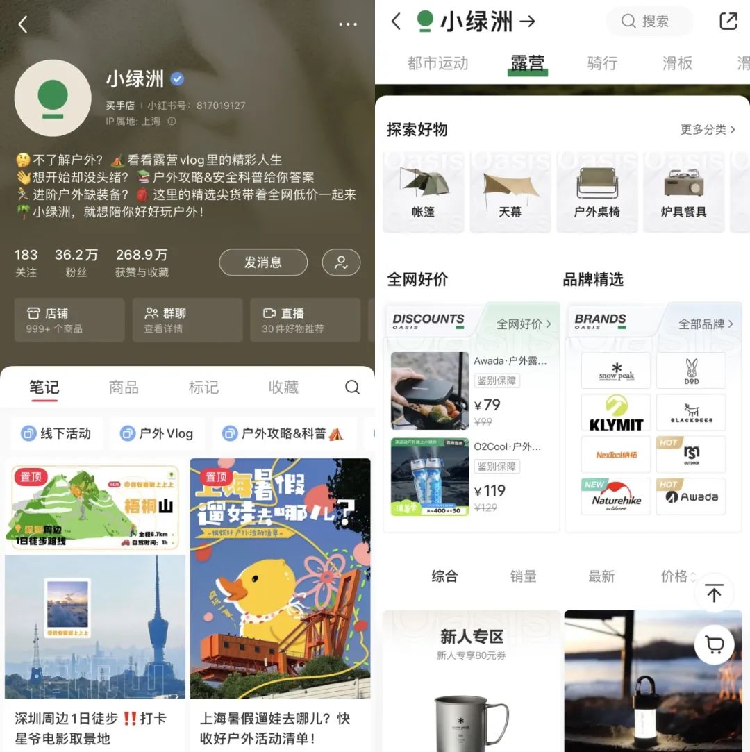 另一个点,则是来自小红书自营电商「小绿洲」的助推。前面提到,MIFA 在小红书的销售主要是通过小绿洲。2022月3月,「小绿洲」由综合电商转为等户外运动垂类电商上线,包含本地和跨境品牌,采取先鉴别再发货的模式。其中很多是还没有开设天猫旗舰店,但被露营圈所喜爱的小众户外品牌。