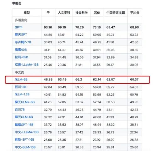 多方消息显示,小米大模型MiLM-6B现身C-Eval、CMMLU大模型评测榜单。