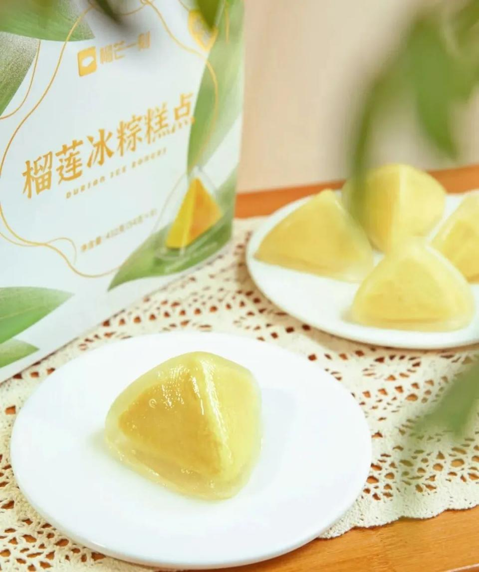 在甜品及烘焙方面,以榴莲为主要卖点的网红品牌“榴芒一刻”,其推出的榴莲冰皮粽子和榴莲千层大受消费者欢迎。榴莲冰皮粽子将榴莲的浓郁香气与软滑的冰皮相结合,带来了别样的口感和风味,这种对传统食品的改良和融合,满足了消费者对于新鲜和独特味觉体验的追求。