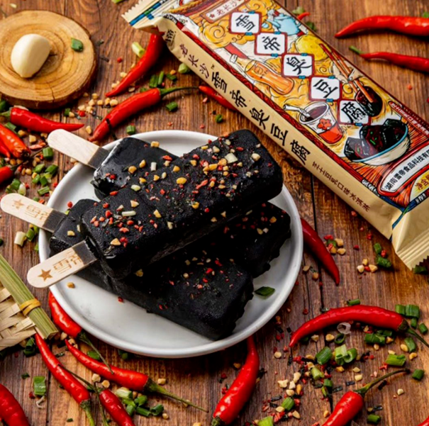 在产品创新上,冰淇淋品牌雪帝就曾推出过一款臭豆腐冰淇淋,黑色巧克力脆皮撒上草莓碎和花生碎,包裹着芝士豆乳味的冰淇淋,模拟出了臭豆腐的外形。
