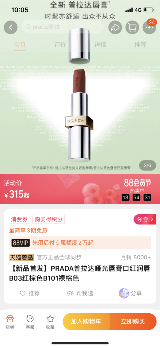 从Prada口红销量来看,消费者还是愿意为三百多一支的口红买单,而定价3000+的面霜和精华,下单人数却是寥寥无几。毕竟三千多的价格,对于“贫民窟女孩”而言,并不是那么“友好”。买来要是不好用,试错成本未免也太高了些。