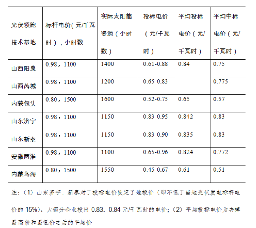 2015年6月,山西大同采煤沉陷区国家先进技术领跑者基地正式获批。2016年5月,第二批共计5.5GW的八个领跑者基地招标公布,其中包括一类资源区的内蒙古包头、乌海,二类资源区的河北张家口,及三类资源区的山东济宁、新泰、安徽两淮、山西阳泉、芮城。