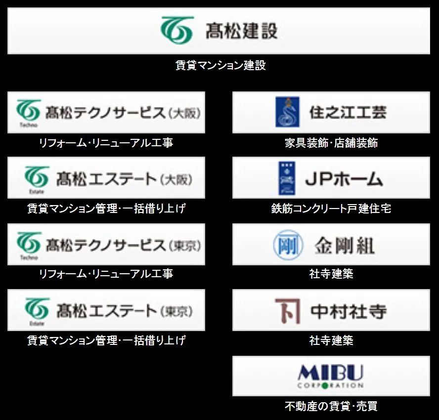 专注于一般钢筋混凝土建筑的高松建设也恰好与金刚组形成了优势互补关系,彼此在业务和客户领域保持了高度的合作关系。