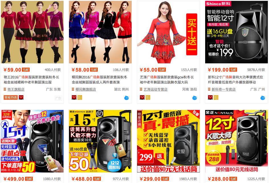 音乐财经随机在一些电商进行了广场舞服饰的筛选,大部分是批发零售与工作室出产,虽然能在区域性形成“爆款”,却没有发现全国性的品牌。这说明广场舞服饰消费群体的品牌意识并不高,还停留在“草台班子糙戏服”的阶段,有值得培养和升级的空间。这也导致了表面上的用户忠诚度不高与消费粘性较差。