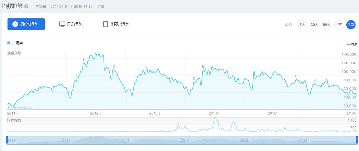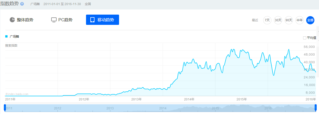 百度搜索指数也显示,广场舞的PC端搜索热度在2012年达到峰值,然后一路下降,但是移动端搜索热度却从2014年开始至今就一直保持高位,由此可见随着智能设备的普及,做移动端平台确实是大势所趋,创业公司除了推出APP之外,还有部分公司甚至为广场舞爱好者推出了平板电脑,例如大福广场舞推出的大福平板等。