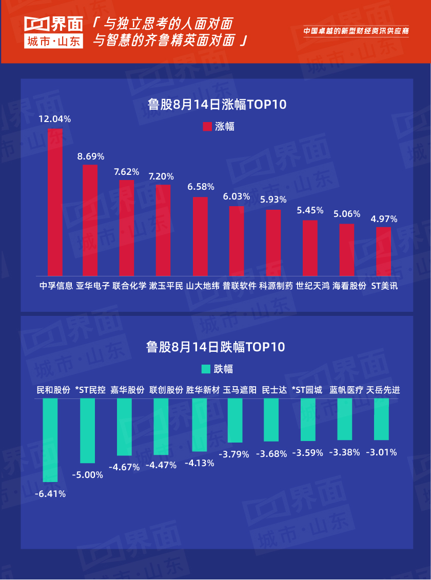 8月14日,山东167只个股上涨,13股持平,123只下跌。