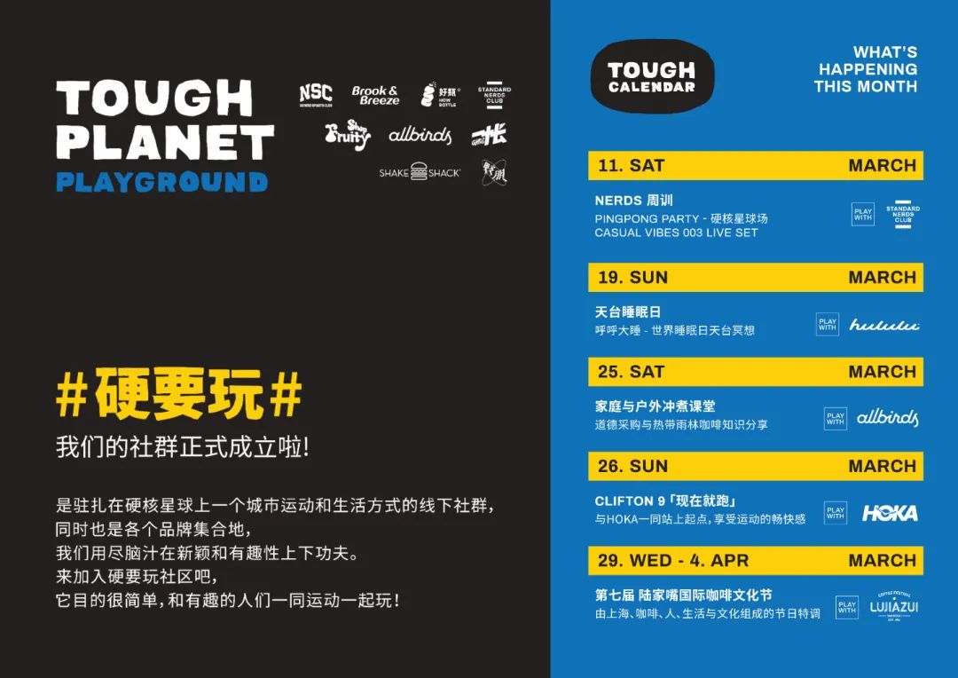 咖啡 + 零售空间品牌硬核星球自 2 月份开业以来,就不断通过与社群、品牌合作举办活动,比如与乒乓球 NERDS 举办周训、与 hululu 合办冥想、与 allbirds 联合开展家庭户外冲煮课堂等。