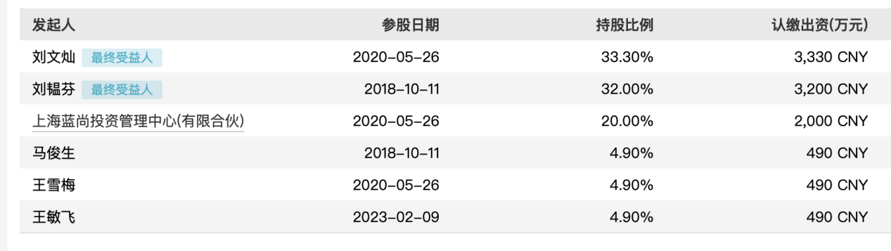 同泰基金成立于2018年,资料显示,原董事长刘文灿曾作为股东于同期出资3820万元参与设立同泰基金。现具体股权分配如下: