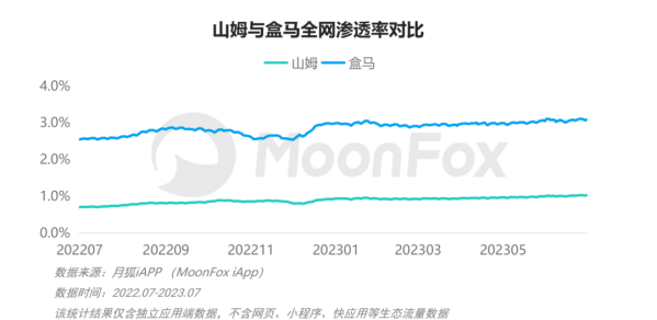 一方面,盒马与山姆的用户群体,重合度很高,二者是典型的“友商”;另一方面,盒马的全网渗透率、月活等数据领先于山姆,难怪会这么遭忌惮。