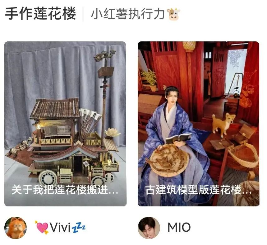 这种剧情讨论的热度也同样蔓延到了小红书平台上,各路剧粉针对原著情节、剧情发展、剧集细节等内容进行发帖讨论,更有深度剧迷进行内容的二次创作,体现在小红书平台上时,在《莲花楼》剧集中所涉及到的古风建筑、汉服装扮等内容都受到了平台手作类、cos类博主的热爱。