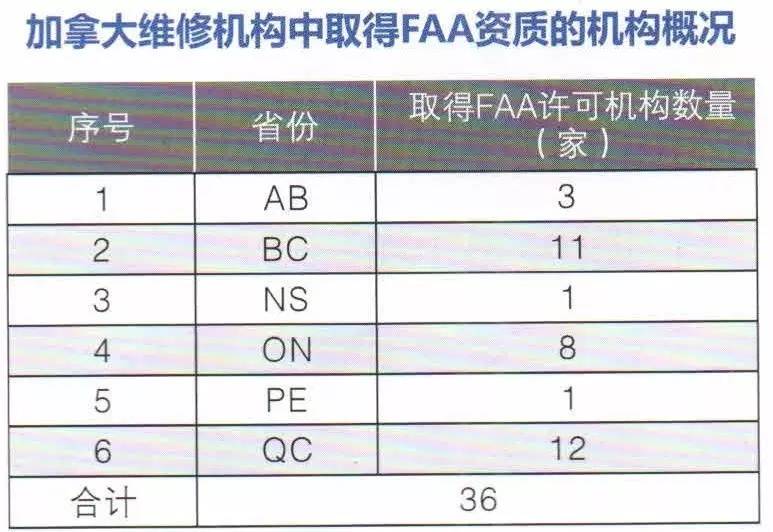 加拿大交通局授权结修机构877家。其中,取得FAA许可的机物36家。取得EASA年可的机构171家,在所有鎌修机构中.既有FAA许可,又有EAsA11F可的机构共有21家。