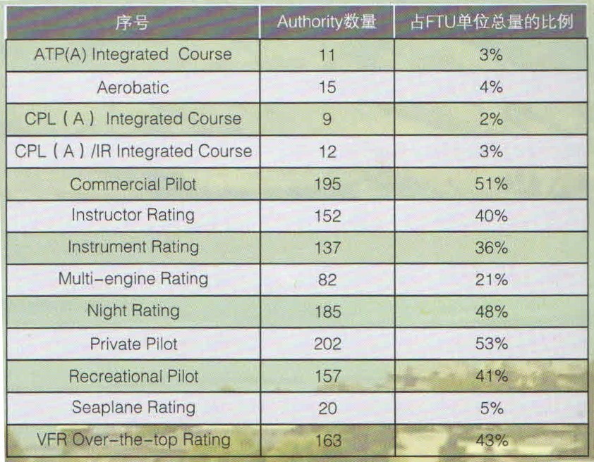 加拿大航空培训单位383家,共分布在加拿大的10个省,NB\NT\YU3个省没有授权培训单位。FTU数量前三位的省分别是安大略省(129家)、魁北克省(78家)和BC省(65家),分别占全国航空培训单位总量的34%、20%和17%。