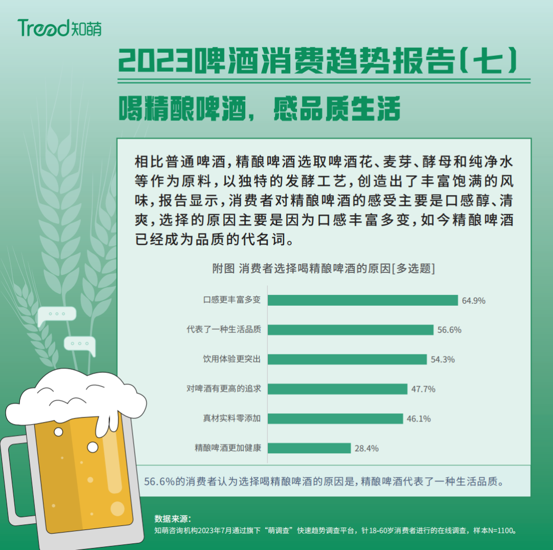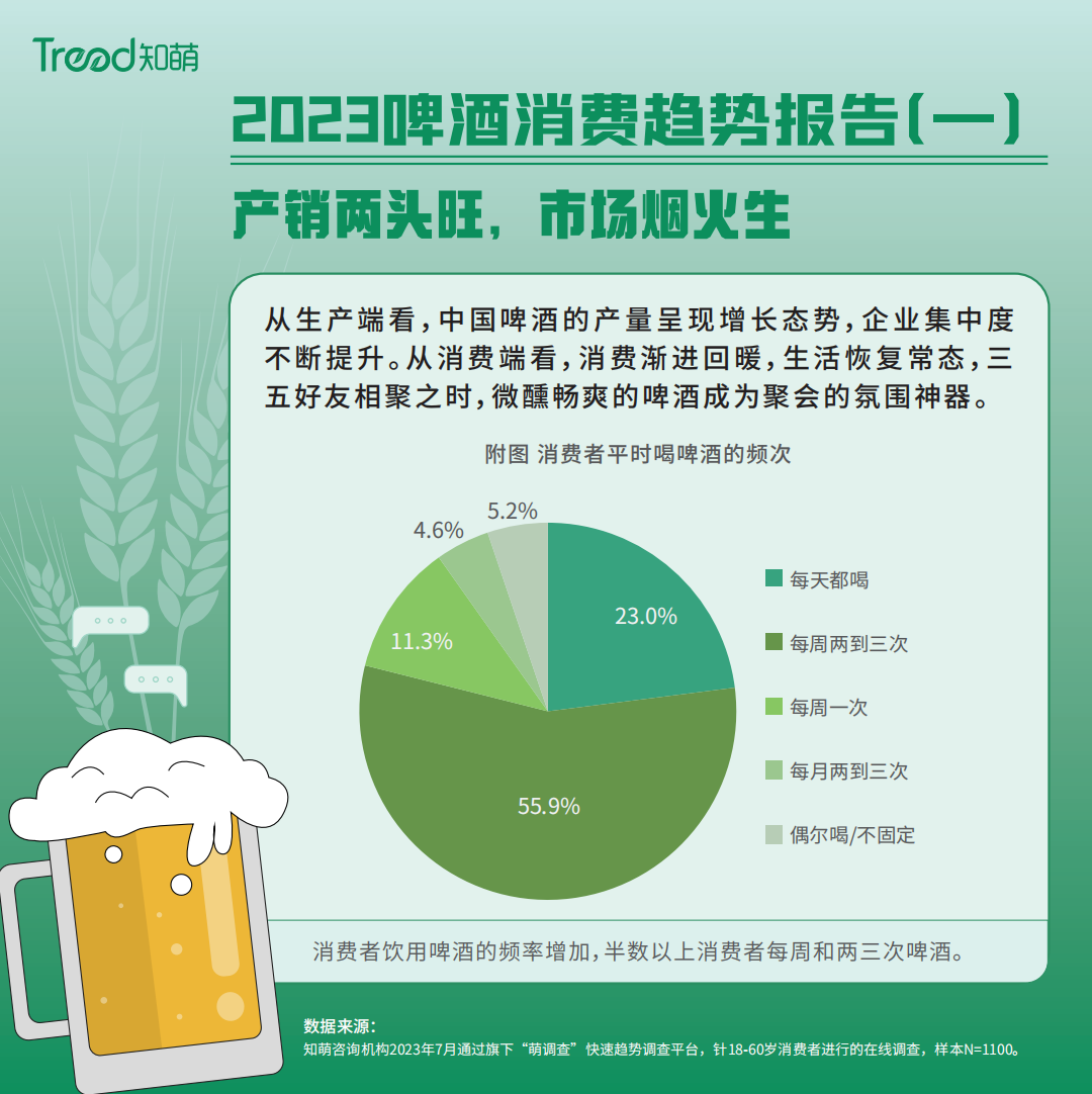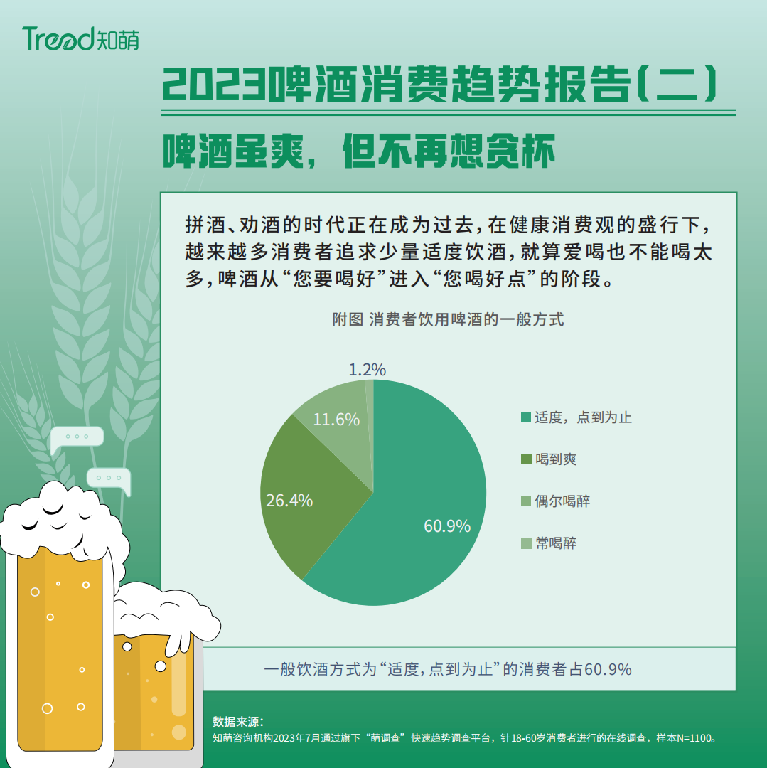 作为一家植根于数字化时代用趋势推动品牌高质量增长的策略咨询机构,知萌咨询机构持续关注啤酒行业消费趋势,在夏日啤酒热销季节,通过旗下的萌趋势调查系统快速开展了一项 “2023啤酒消费趋势”的研究,并推出《2023啤酒消费趋势报告》。