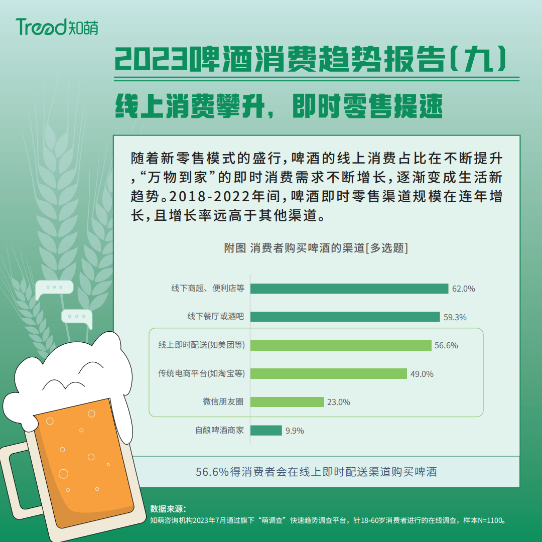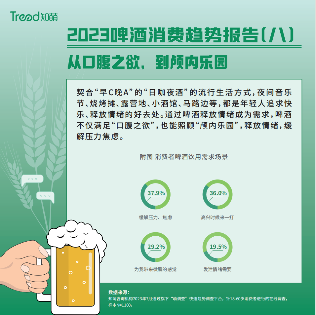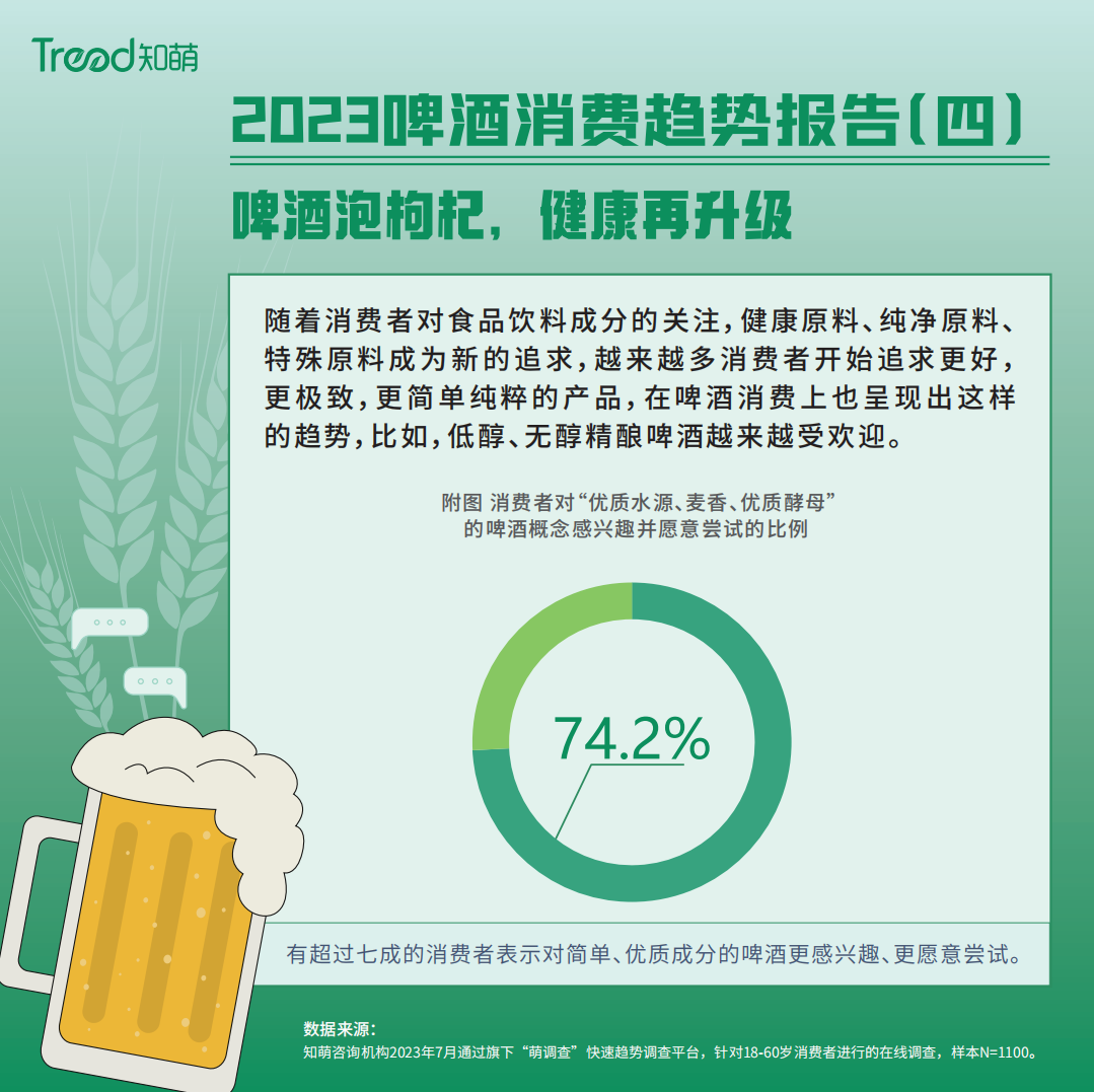 作为一家植根于数字化时代用趋势推动品牌高质量增长的策略咨询机构,知萌咨询机构持续关注啤酒行业消费趋势,在夏日啤酒热销季节,通过旗下的萌趋势调查系统快速开展了一项 “2023啤酒消费趋势”的研究,并推出《2023啤酒消费趋势报告》。