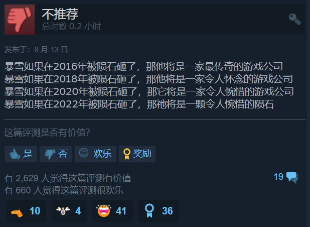 如果人还不够具象,那么作为一个标签,“暴雪游戏”本身口碑的滑落,也成为了《守望先锋2》在Steam平台的一个集火点。