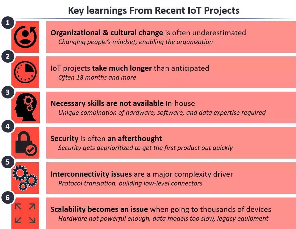 这些物联网项目不仅是技术类似,IoT analytics还发现,即使在已经完成了的物联网项目中也会存在一些很常见的技术缺陷。