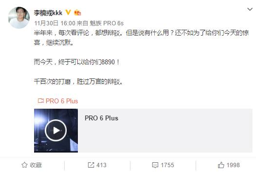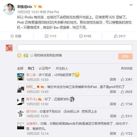 此外,面对大家对Pro 6s的不满,李楠曾经轻描淡写一句“日常使用X25足够了”就敷衍应对,还曾表示过不会有8890,现在啪啪打脸出p6p,这像六月天一样的态度,把煤油们都给弄怕了。