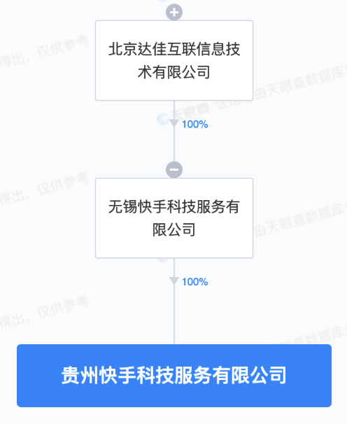 天眼查App显示,近日,贵州快手科技服务有限公司成立,注册资本500万元,法定代表人为董宇,执行董事为快手联合创始人杨远熙,监事为快手联合创始人银鑫,公司经营范围含技术服务、数字技术服务、广告设计、文化娱乐经纪人服务、其他文化艺术经纪代理等。股东信息显示,该公司由快手关联公司北京达佳互联信息技术有限公司间接全资持股。