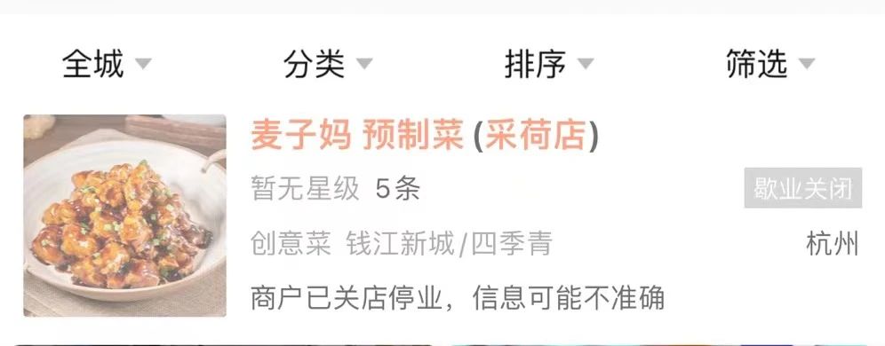 而此前多家名为“麦子妈预制菜”的门店,则停止营业。大众点评平台显示,杭州3家“麦子妈预制菜”门店已经歇业关闭。