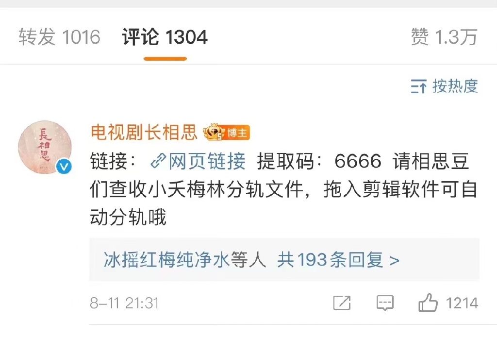 8月11日,剧方直接发布这段剧情的分轨文件,文件内包括由拍摄视频、音效配音、氛围BGM和人声台词,邀请观众重新剪辑。尽管有观众认为剧组“懒惰能力差”,“创造了一种新的追剧模式”,但此举基本平息了争议。