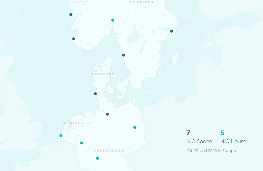 (蔚来NIO Space、NIO House欧洲分布情况,图源:蔚来官网)