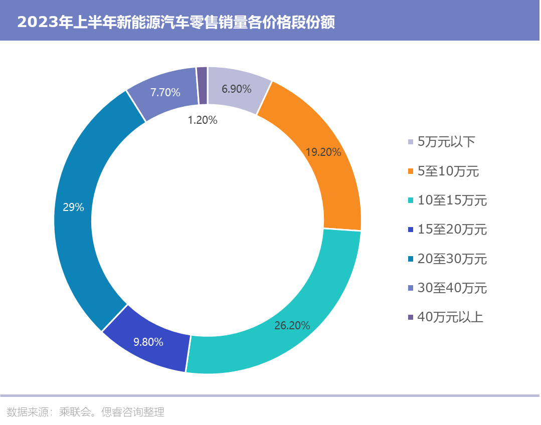 高处不胜寒,为蔚来所在的高端市场买单的用户越来越少。据乘联会数据统计,纵观整个乘用车消费市场,虽然30万元至40万元的高端新能源车型在国内乘用车市场的销量占比在逐年提升,但目前其占整个国内新能源乘用车销量也不到8%左右;40万元以上的新能源汽车则更少,2023年年初至今该价格段汽车总计零售销量仅占全部新能源零售销量的1.2%。