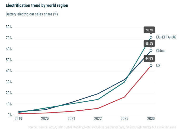 (中、美、欧新能源渗透率预测,图源:ACEA)