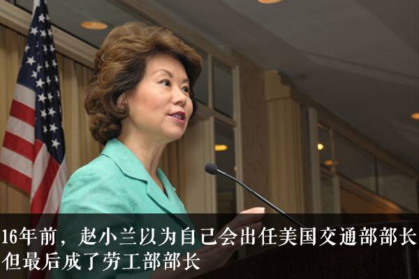 若提名获国会通过,赵小兰将在服务里根政府并出任海事署副署长;服务老布什政府并出任美国交通部副部长;服务小布什政府并入内阁连任美国劳工部部长之后,再次进入白宫内阁担任部长,也写下两入内阁,“三朝元老”的新历史。
