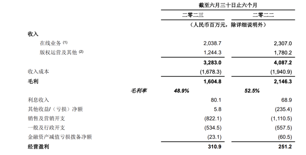 在线业务方面,包括在线付费阅读、广告和游戏分销业务在内,早在2022年便出现收入下滑。财报称,上半年的下滑,主要因为公司采取了优化分销渠道的措施,以及更多内容通过投资回报率较高的付费阅读产品变现,导致广告收入减少所致。