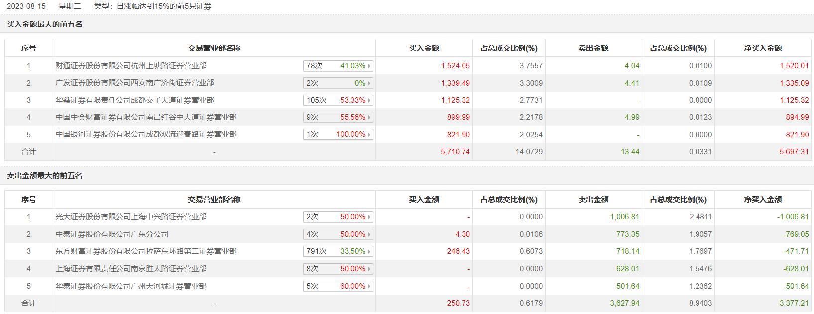 8月15日,广康生化今日涨停,龙虎榜数据显示,上榜营业部席位全天成交9602.85万元,占当日总成交金额比例为23.66%。其中,买入金额为5961.47万元,卖出金额为3641.38万元,合计净买入2320.1万元。