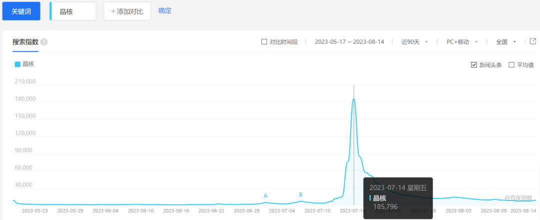 目前《晶核》仍处于APP Store畅销榜单中,但从七麦数据来看,游戏近三十天流水峰值呈逐步下滑趋势,从百度指数来看,游戏在7月14日迎来唯一的峰值后,指数迅速从185796下滑到了10000以下,峰值仅维持了一周时间,且目前并没有出现第二波峰值的迹象。相比之下,爆款游戏的峰值是更坚挺的,《永劫无间》上线前后的热度峰值维持了近三个月。