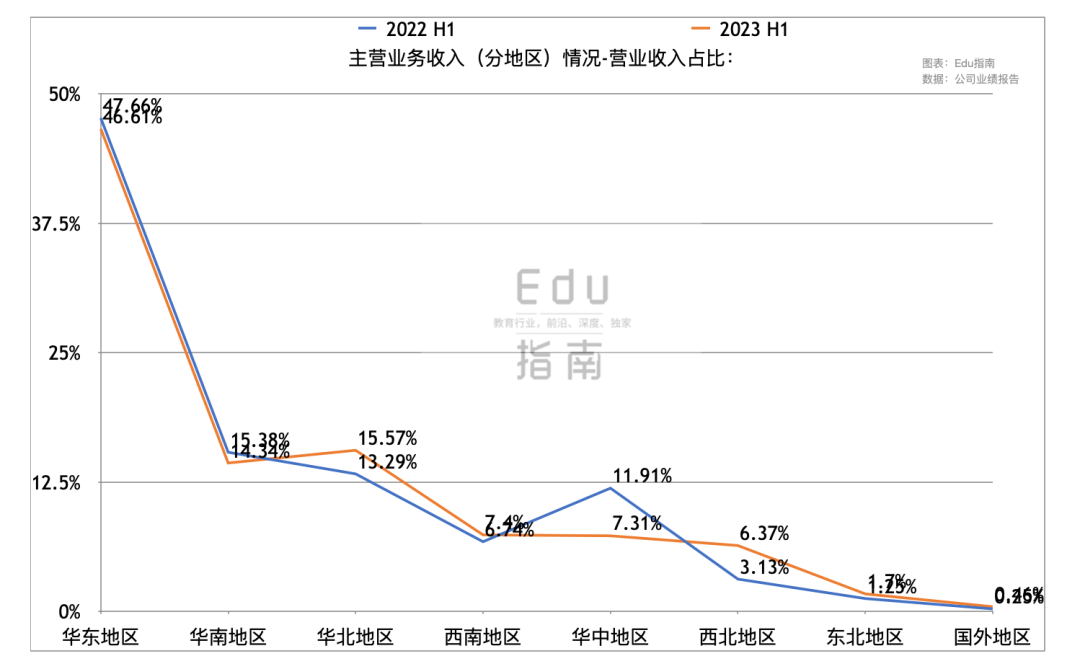 从地区收入比例来看,该公司本期华东地区、华南地区、华中地区收入占比分别为47%、14%、7%,相较上一财年同期占比的48%、15%、12%分别有所下降。华北地区、西南地区、西北地区、东北地区、国外地区收入占比为16%、7%、6%、2%、0.5%,分别占比有所提升。