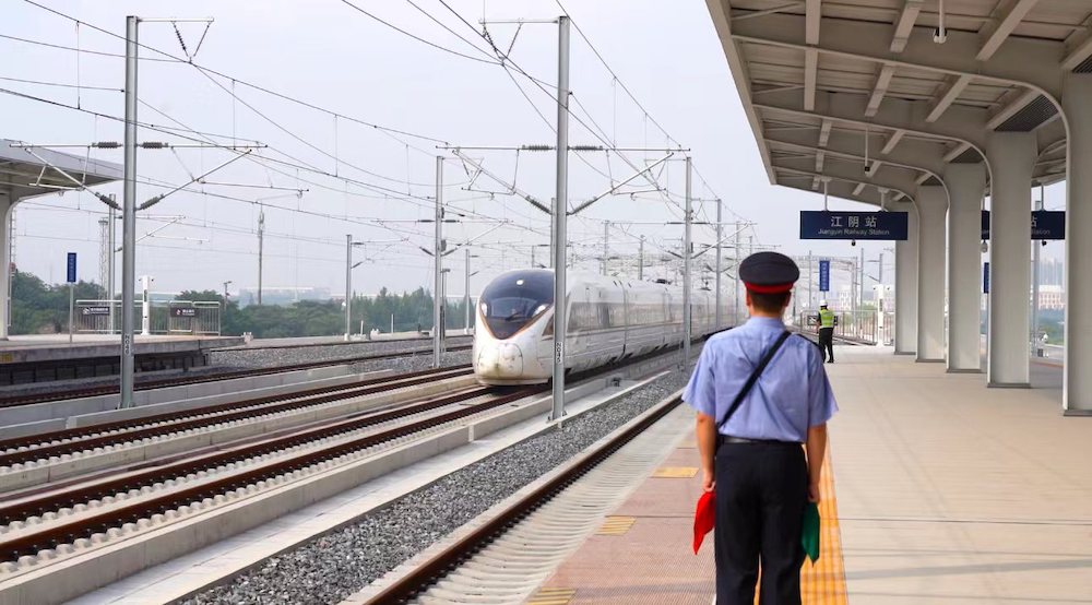 8月16日8时,随着G55301次列车从南京南站出发,沿着沪宁沿江高铁驶向太仓站方向进行列车运行图参数测试,标志着沪宁沿江高铁联调联试工作结束,转入试运行阶段,全线开通运营进入倒计时。