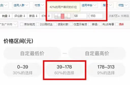 以防晒外套在淘宝的销售为例,目前主要分为3个价格区间,30%的消费者选择39元以下,60%的消费者选择39-178元,9%的消费者选择178-299元。由此可见,“性价比”仍然是影响消费者下单的重要因素之一。
