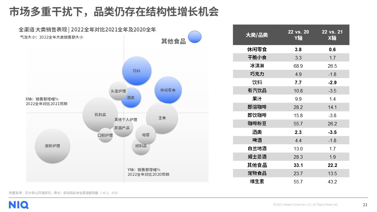 至于哪些因素推动这些品类的增长,我们会用NIQ的数据模型,去把这些品类增长因素做拆解,主要两方面,一个涨价,一个创新,具体的方式大家有兴趣会后就逐个品类做交流。