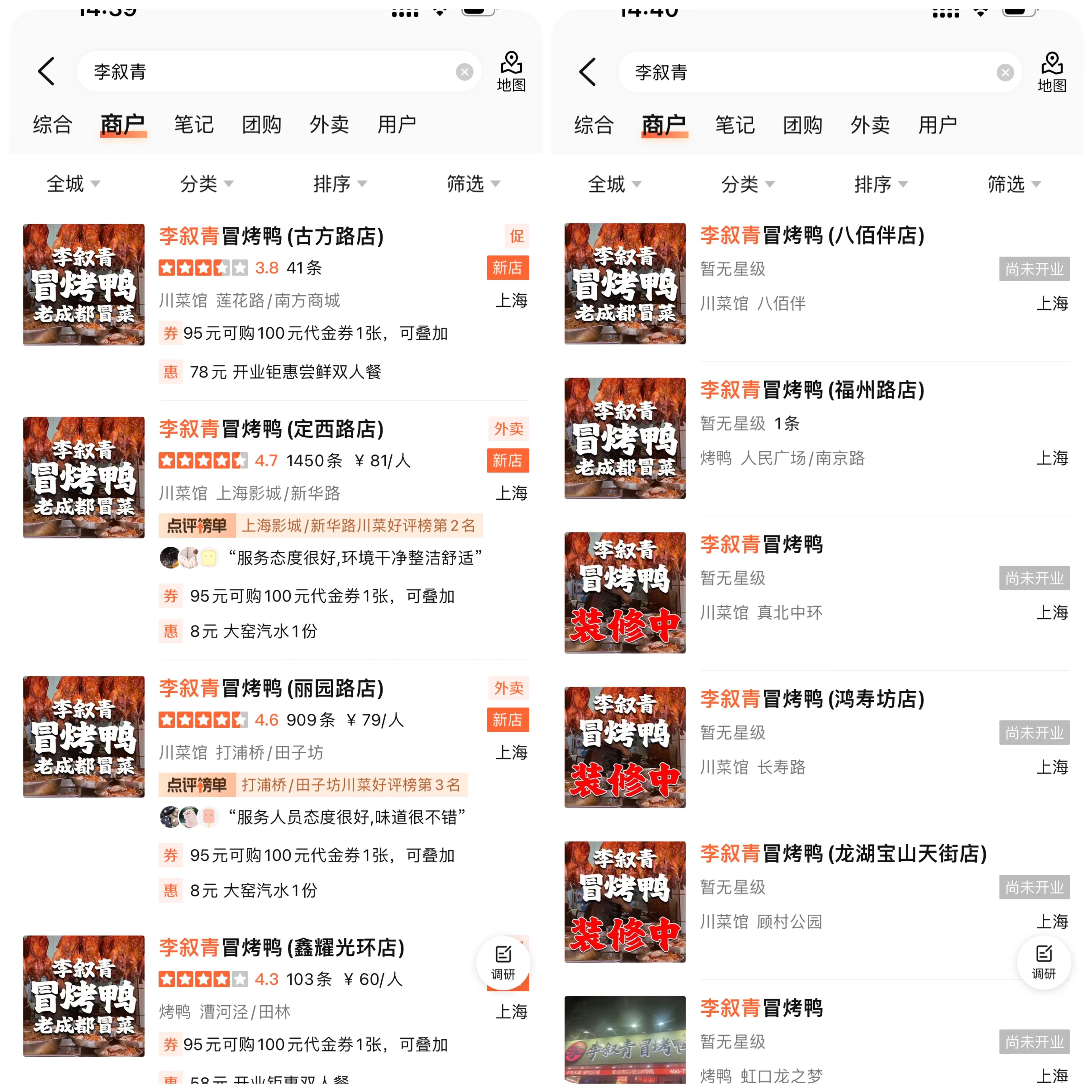 比如李叙青冒烤鸭,5月才在上海开出首家门店,截至8月14日,李叙青冒烤鸭已经在上海、合肥、江苏盐城、福州等城市开出了17家门店,其中仅在上海市场,就有15家新店正在装修中。