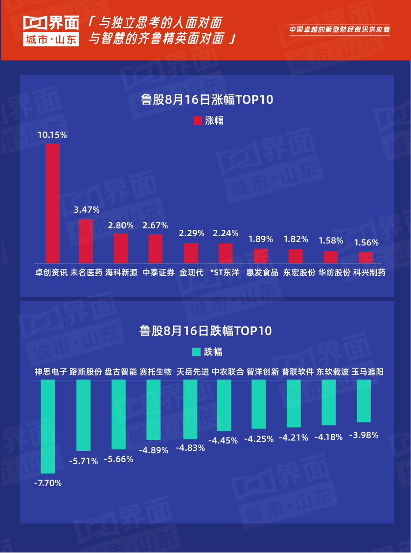 8月16日,山东67只个股上涨,224只个股下跌。