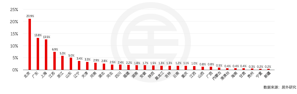 2016年1到5月,在居外网上的美国房源询盘总量中,来自北京的买家数量最高,占20.9%,排名第二的是广东买家,占比13.8%,而上海居外网数据显示则以13.5%的占比量排在第三位。