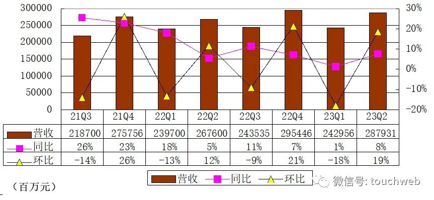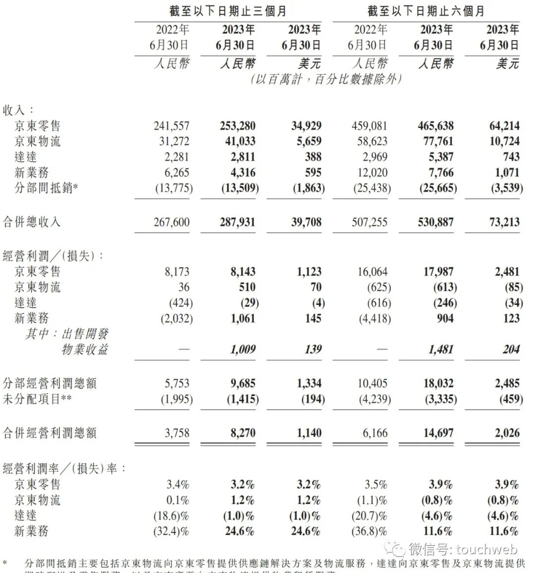 京东2023年第二季度营收为2879亿元(约397美元),较上年同期的2676亿元增长7.6%。