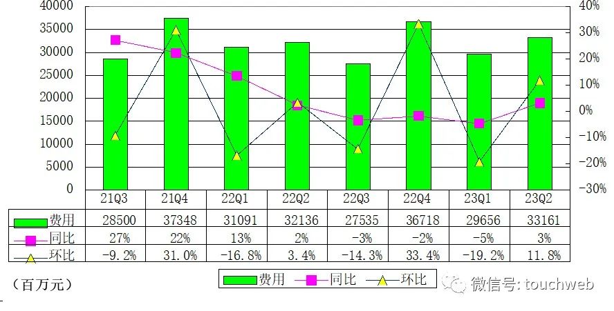 京东2023年第二季费用331.61亿元,较上年同期的321.36亿元增长3%。