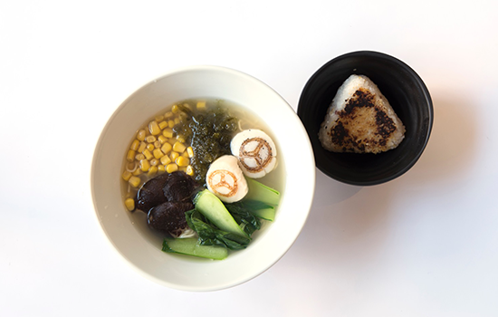 ▽海之流星面:法国口味的西式鱼汤底与烤饭团的组合,面吃完了可以把饭团泡在鱼汤里做成泡饭。鱼饼上印着奔驰的LOGO。