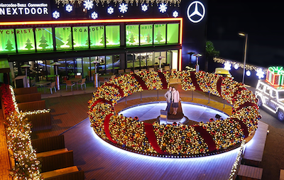 “放下身段”卖拉面,其实是为了配合奔驰在日本推出的新款高端车型E-Class Stationwagon的宣传,此外还有一个直径十米、号称世界最大的圣诞花环。为了吸引人们来馆内体验,奔驰也是煞费苦心。