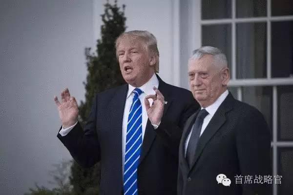 特朗普暗示马蒂斯是很厉害的人物。“很多人说他(马蒂斯)是最接近巴顿将军的人,这就是我们需要的。”