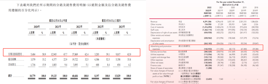 就招股书数据来看,茶百道 2020 年、2021 年、2022 年,宣传推广费用分别为 548.4 万、1294.5 万、3786.9 万。不过即使加重了营销支出,但相较花了 14293.3 万推广的奈雪,还是少了一个数量级。