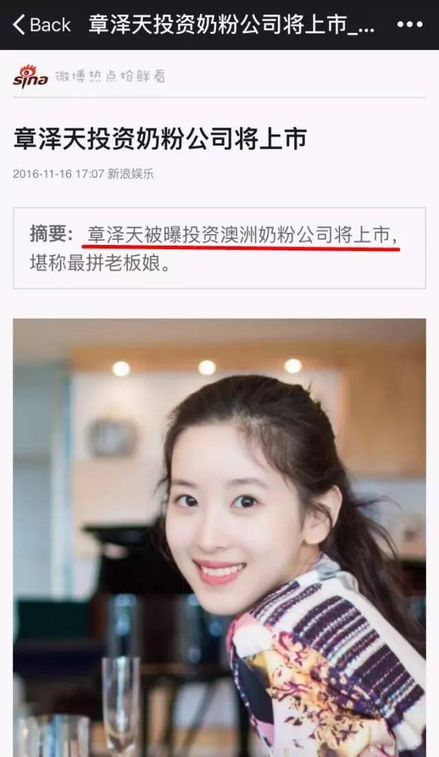 如今,刚生完baby的她,就投资了即将上市的澳洲奶粉公司。