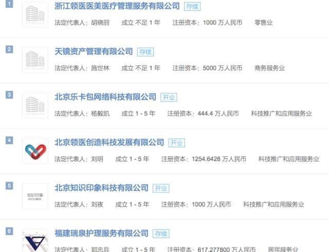 同时,东辰还在今年5月投资了一家名为“北京领医创造科技发展有限公司”。这家公司主要是做数字医疗创业孵化平台的。今年8月,东辰还与北京领医共同投资了“浙江领医医美医疗管理服务有限公司”。