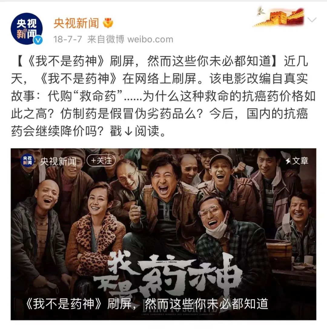 甚至,电影引发的讨论盖过了电影本身,电影的社会性超越了娱乐性,《我不是药神》之后推动了国家抗癌药降价保供等社会措施的施行,在电影艺术的人文关怀层面,为现实主义题材影片打了个样。